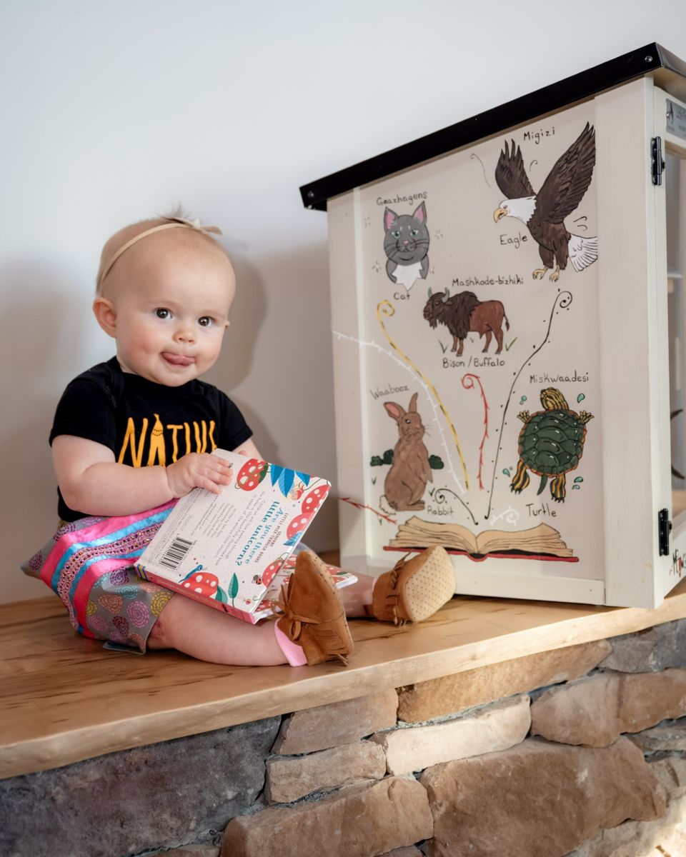 Miranda O. is a recipient of a grant from our Indigenous Library Program! The library is inside the Naytahwaush Indian Health Services clinic located on the White Earth reservation in Minnesota. She painted the library with animals and included their Ojibwe names.