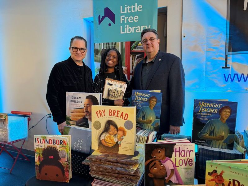 Little Free Library Executive Director and CEO Daniel Gumnit attended the event and celebrated with the community. “These Little Free Libraries are part of a global book-sharing movement. They’re in 128 countries on seven continents, and every year they give away about 83 million books, which is a big number,” he explained.